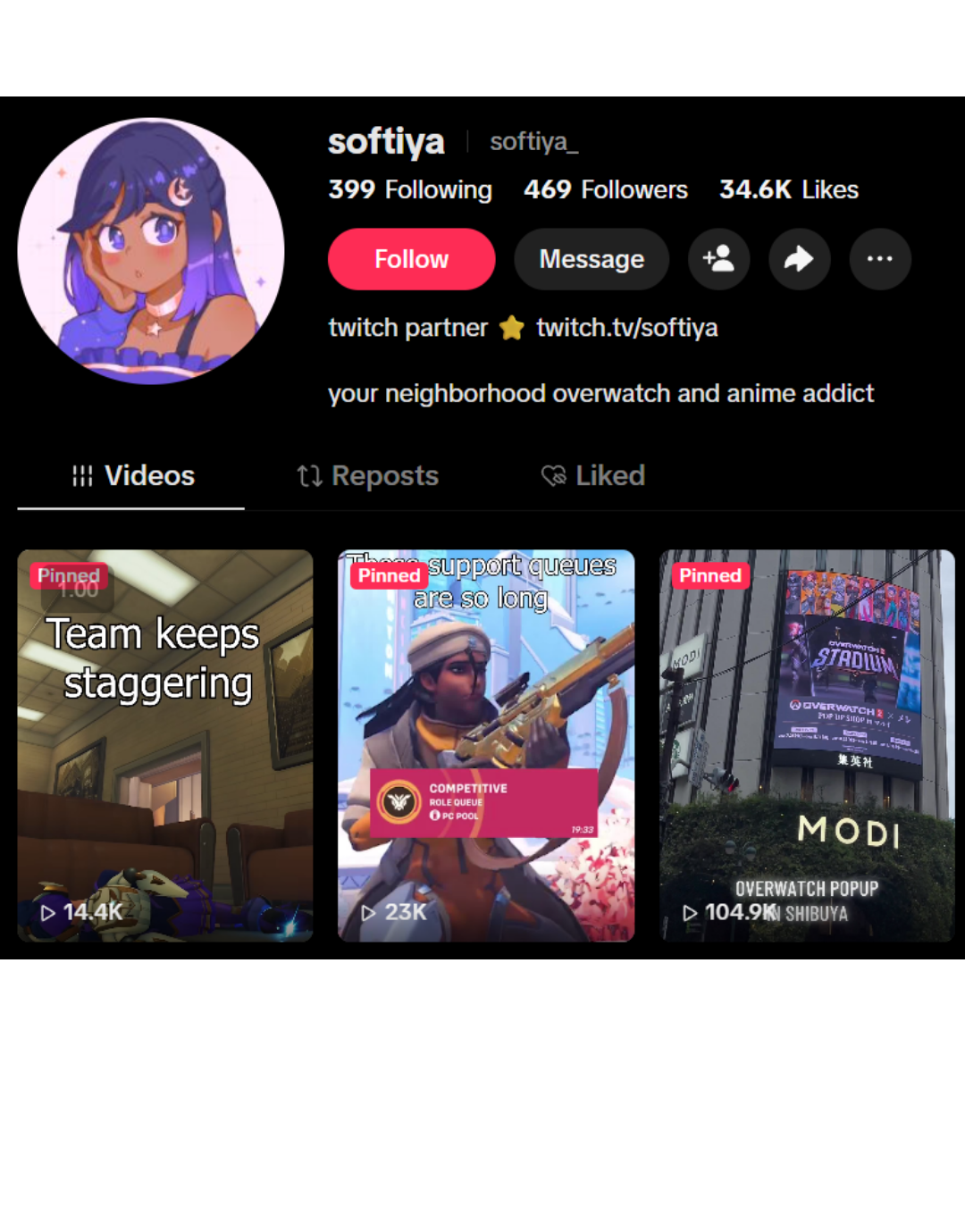 One of the best examples of this was helping grow Softiya’s online presence by supporting her TikTok content, social strategy, and Twitch growth. Through consistent posting, video editing, trend-focused content, and community support, I helped her reach 250K+ views, earn 30K+ likes, and grow her Twitch channel toward becoming an Affiliate.